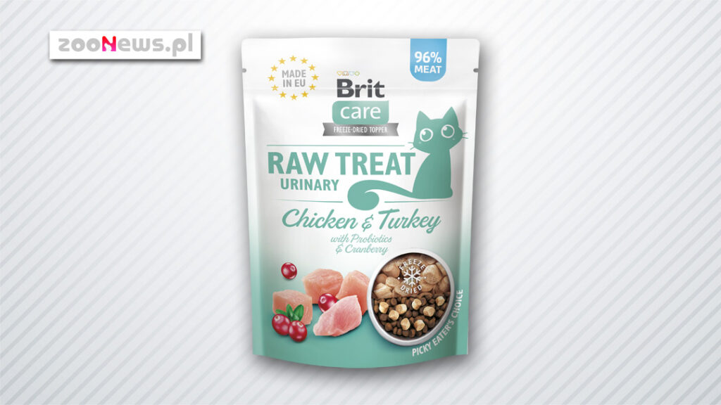 Brit Care Cat Raw Treat Urinary Chicken & Turkey with Probiotics & Cranberry to delikatne, liofilizowane smakołyki, zawierające około 96% świeżego mięsa. W swoim składzie zawierają również probiotyki, wspierające zdrowe trawienie i wpływające pozytywnie na kształtowanie optymalnej odporności. Mogą być stosowane jako smakowita nagroda lub “dosmaczacz” do codziennych posiłków. Niewielkie krokiety mają smak kurczaka z indykiem, wzbogaconych probiotykami i żurawiną. Żurawina ma za zadanie wspierać optymalne zdrowie dróg moczowych. Smakołyki są zamknięte w poręcznym, 40g opakowaniu, które można wielokrotnie zamykać i otwierać.