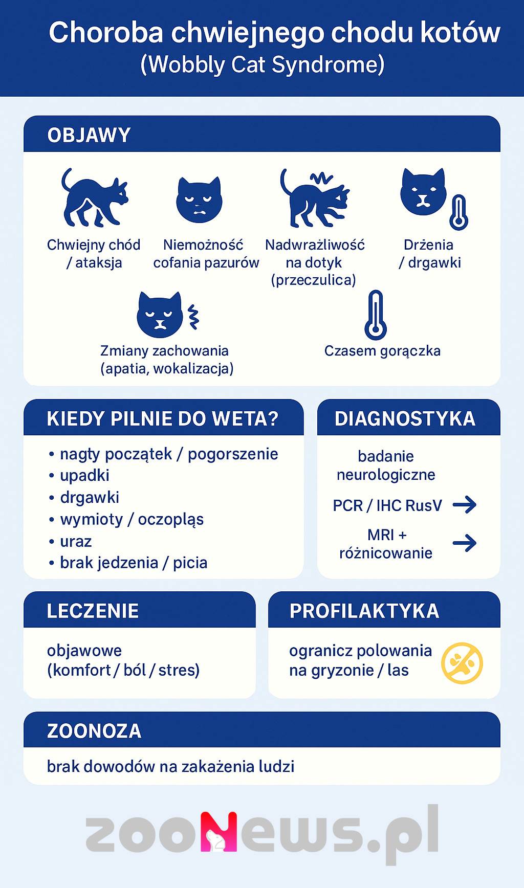 Z. Gliński, A. Żmuda, Choroba chwiejnego chodu kotów, http://agro.icm.edu.pl/agro/element/bwmeta1.element.agro-2919e290-6031-47a2-acfb-50f5e64bfac8/c/Choroba_chwiejnego_chodu_kotow.pdf (dostęp: 29.8.2025).