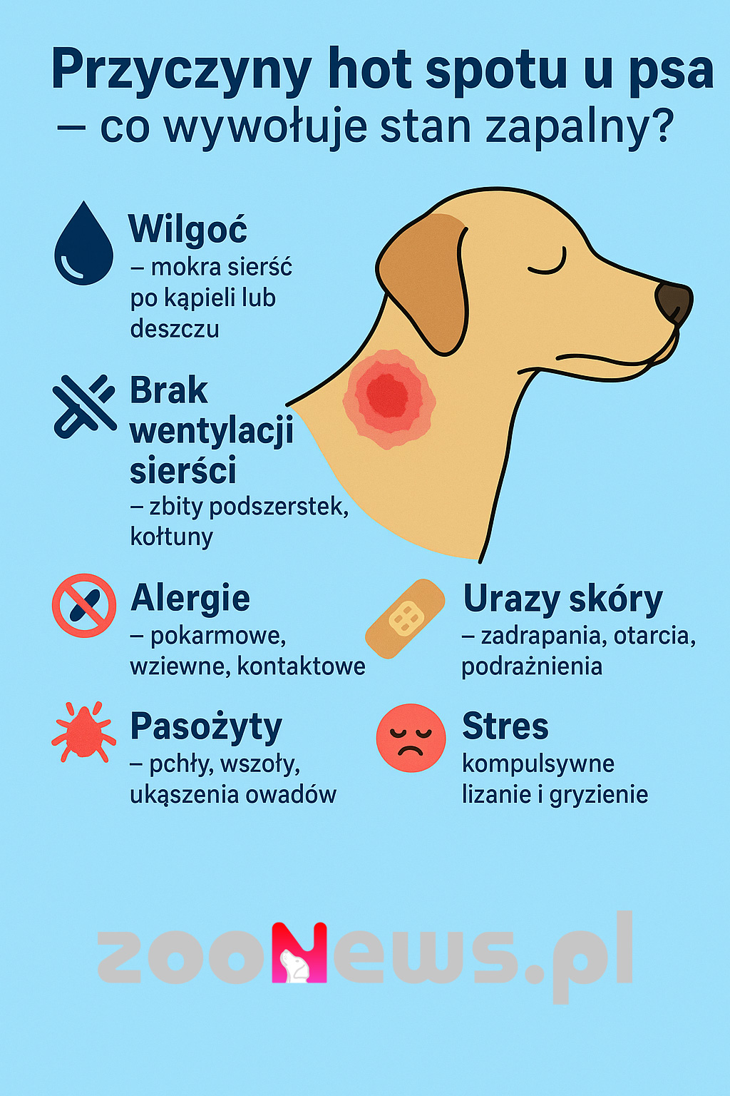 Hot spot nie jest chorobą samą w sobie, lecz reakcją organizmu na konkretny bodziec prowadzący do uszkodzenia skóry. Do najczęstszych przyczyn hot spotów należą:
