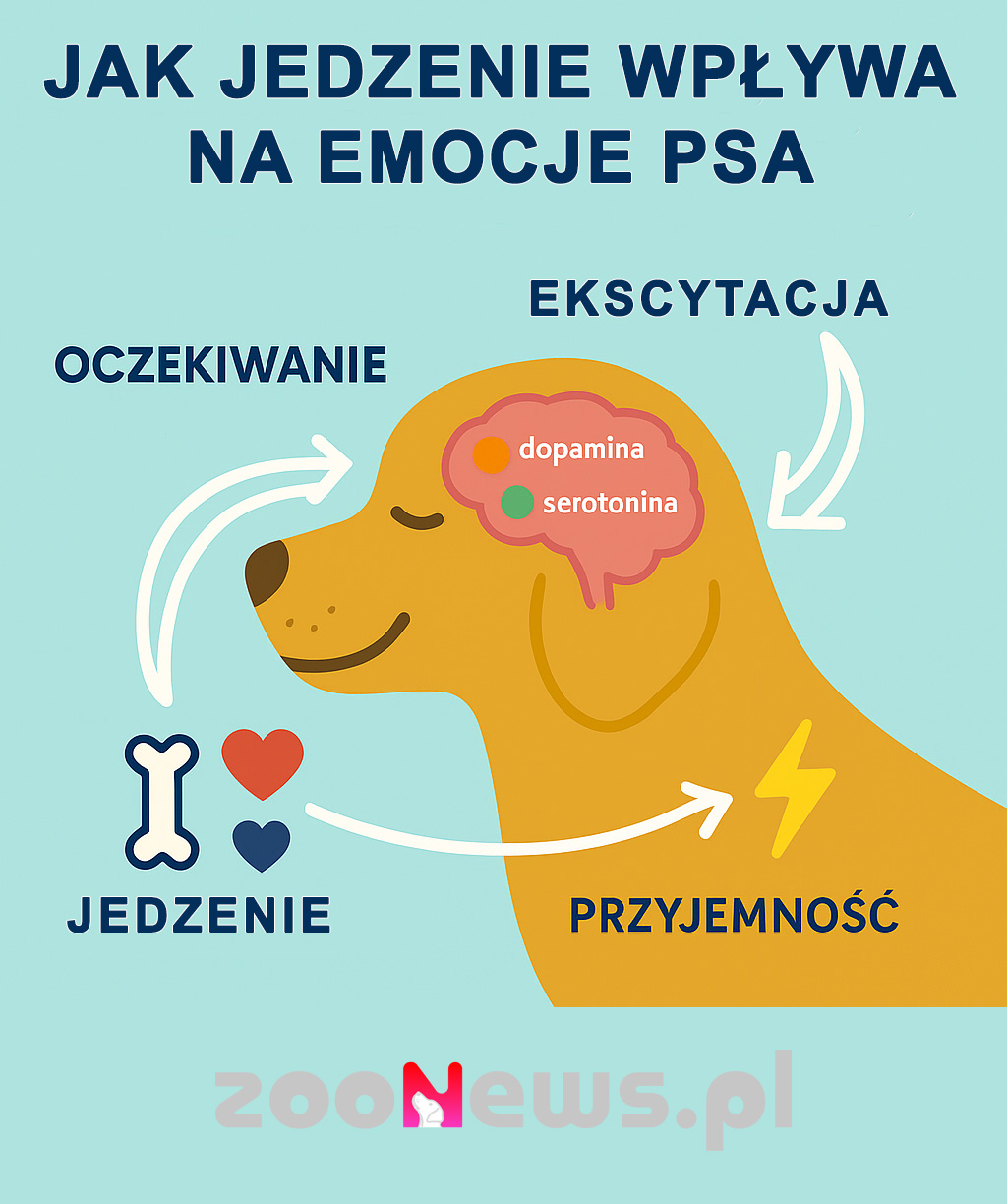 Stan emocjonalny psa jest tłem dla jego zachowania. Dobre jedzenie i odpowiednie karmienie wspierają równowagę emocjonalną. Natomiast nieprawidłowa dieta, pełna nadmiarowych kalorii lub źle zbilansowana może prowadzić do zaburzeń nastroju. Psy w złym stanie emocjonalnym częściej kompulsywnie domagają się pokarmu, traktując go jako sposób na poprawę samopoczucia. Pies może jeść, by regulować emocje, podobnie jak człowiek sięgający po słodycze w stresie.