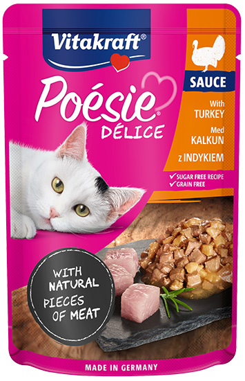 Mokra karma świetnie sprawdza się również jako urozmaicenie codziennej diety opartej na suchej karmie – poprawia smakowitość posiłków i wspiera zdrowie układu moczowego.