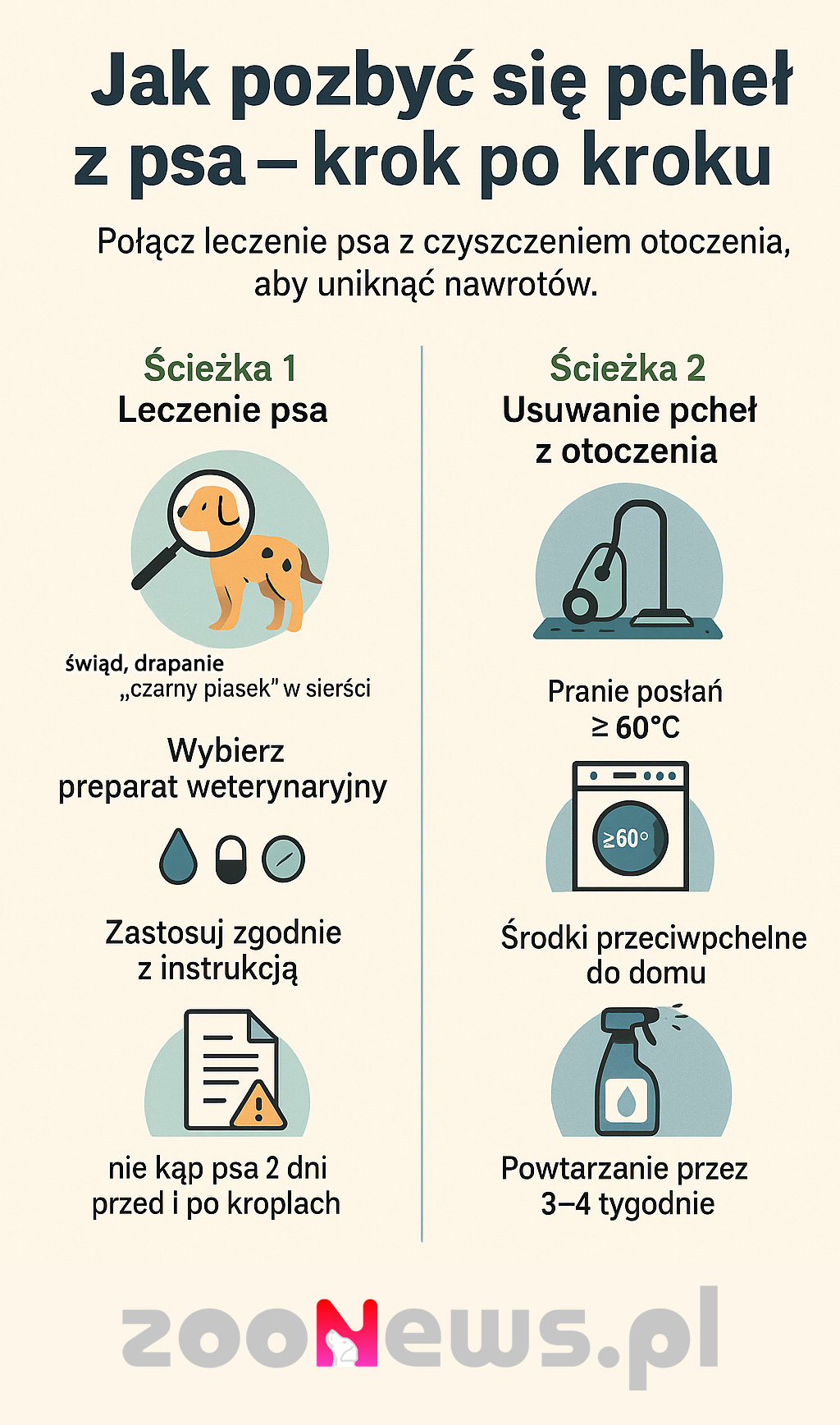 Rzadko i krótkotrwale. Postaw na preparaty weterynaryjne (krople/tabletki/obroża) + intensywne sprzątanie domu.