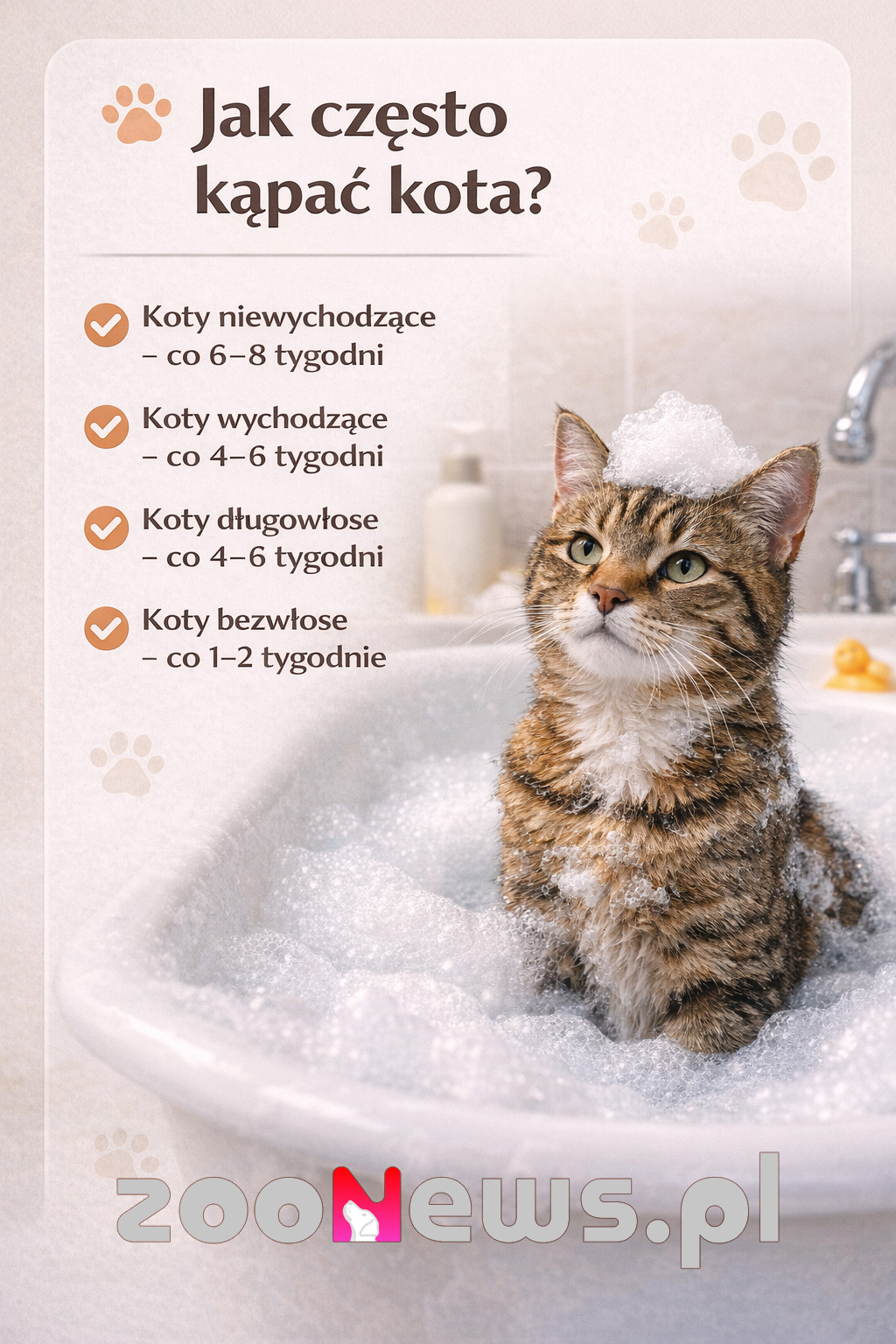 - Koty długowłose – co 4–6 tygodni, zawsze w połączeniu z czesaniem 2-3 razy w tygodniu.